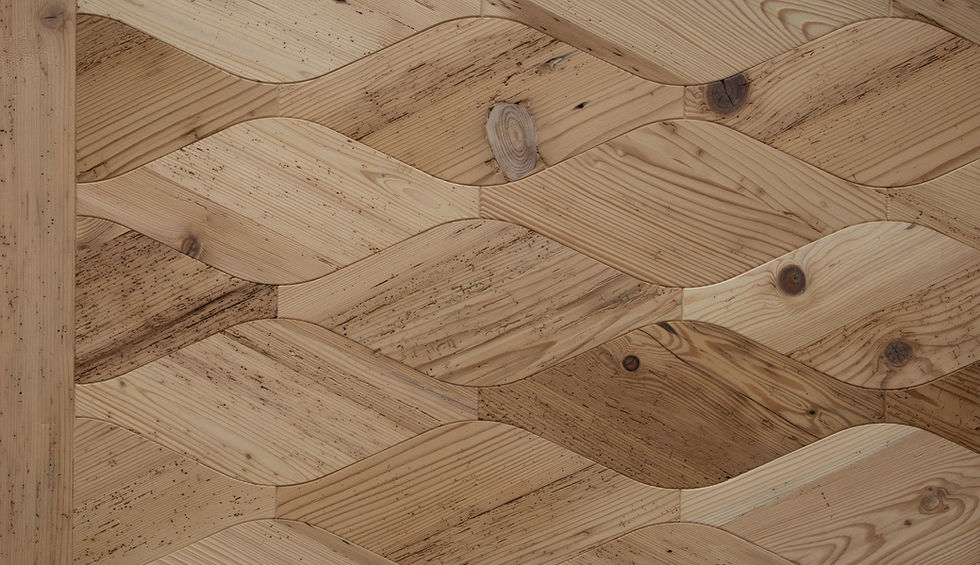Une sortie au bord de la Méditerranée serait-elle l'inspiratrice de nos produits Ticinoro ONDO? Avec leur look marin et leur forme ondulée, ces parquets se démarquent du profil traditionnel des lames: en émerge un design spécifique qui s'écarte du motif classique des sols en bois, sans pour autant s'aventurer trop loin des profils familiers. Mais l'arrondi inattendu des lames donne du mouvement à l'ensemble et rappelle des formes tirées de la nature, comme le galbe des vagues – pour un véritable design del mare. Et détail ultime: les lames en châtaignier du Tessin sont disposées selon un angle de 45°. Avec cette configuration inédite, les produits Ticinoro ONDO nous emmènent vers un design exceptionnel au caractère unique. Ces parquets n'en restent pas moins très faciles à poser – et donc parfaits pour un aménagement raffiné de votre intérieur.